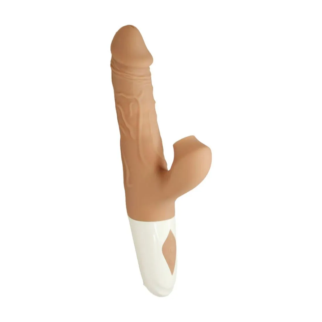 Além de possuir o movimento de “vai e vem” (lembrando muito a penetração real), este vibrador possui motor duplo. Um para a parte penetrável (que graças a leve formatura da glande, pode alcançar o ponto G), quanto no estimulador clitoriano (para fazer o estímulo externo).